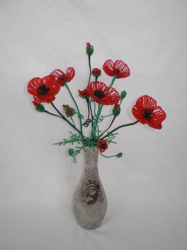 Букет маков из бисера, 40 см высотой. В наличии. 39,99 евро