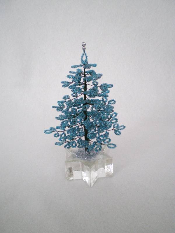 Маленькая ёлочка из бисера, в стеклянной подставке. Высота 12-13см.
