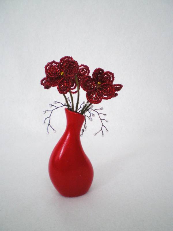 Мини-букет из бисера, в керамической вазочке. Высота 10-12см.